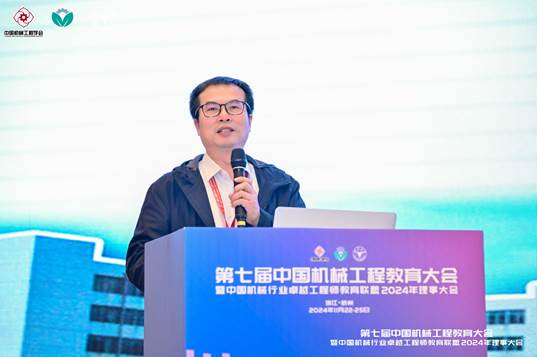 11月23至25日,由中国机械工程学会和中国机械行业卓越工程师教育联盟主办、浙江大学承办的第七届中国机械工程教育大会暨中国机械行业卓越工程师教育联盟2024年理事大会在浙江杭州召开。会议邀请了浙江大学杨华勇院士、天津大学顾佩华院士、清华大学汪家道院长做了主旨报告。来自清华大学、浙江大学、上海交通大学、华中科技大学、西安交通大学、哈尔滨工业大学等高校的7位知名院士及800余位专家学者参会。机械工程学院张道德教授应中国机械工程学会邀请做《产出导向专创融合的机械专业人才培养探索及课程实施》专题报告。