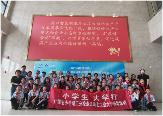 5月26日上午,现代制造质量工程湖北省重点实验室迎来了一群活泼可爱的孩子,他们是来自广埠屯小学湖工分校二年级一班的小学生。