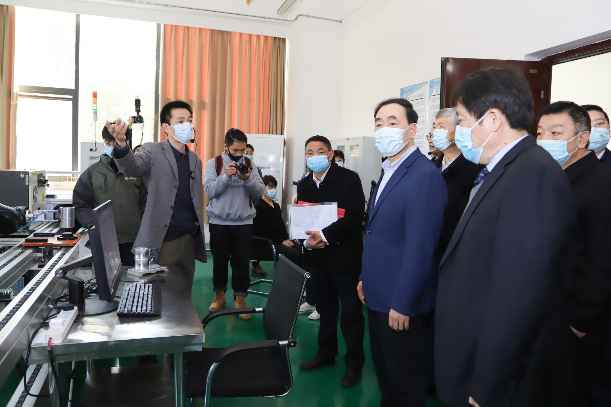出席揭牌仪式的领导、嘉宾参观了智能制造产业学院生产线和现代制造质量工程湖北省重点实验室。