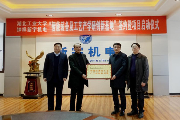 3月19日,湖北工业大学、钟祥新宇机电制造股份有限公司“智能装备及工艺产学研创新基地”“共建大学生就业实践基地”签约暨项目启动仪式在钟祥新宇机电总部举行。校党委常委副校长李冬生、钟祥市委常委副市长李波、新宇机电董事长游学峰出席了签约仪式,钟祥市委组织部、市科信局、市人社局、市发改局、市经济开发区、校科学技术发展研究院、机械工程学院及新宇机电相关部门负责人共同见证了签约仪式。