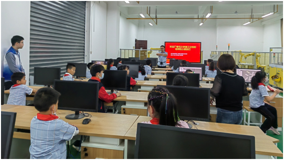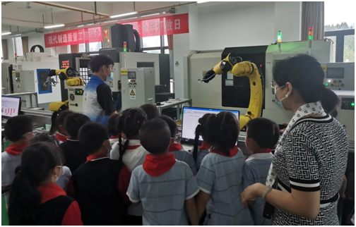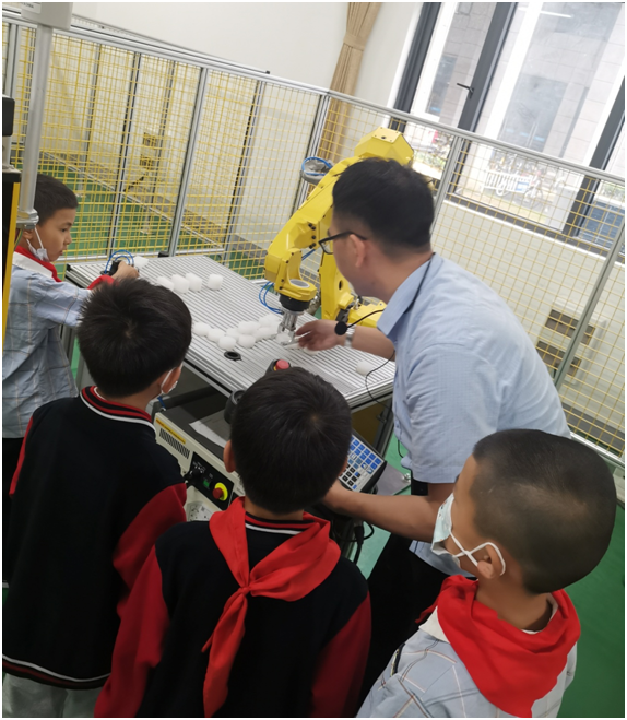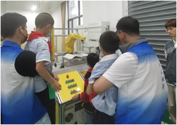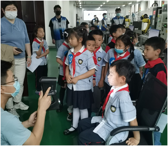 此次开放日活动分为智能制造生产线和机器人实验室两组交替进行,孩子们走进实验室,零距离观察和体验现代化实验室。