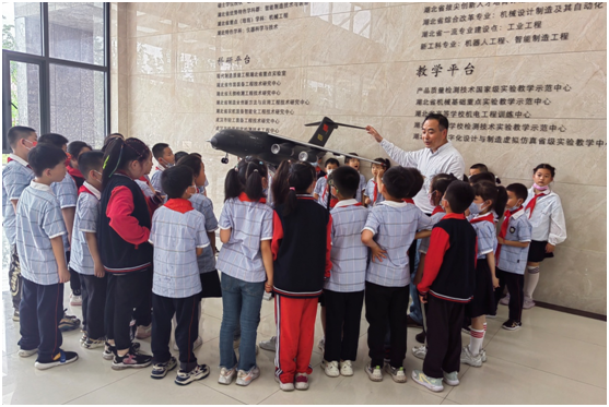 5月26日上午,现代制造质量工程湖北省重点实验室迎来了一群活泼可爱的孩子,他们是来自广埠屯小学湖工分校二年级一班的小学生。