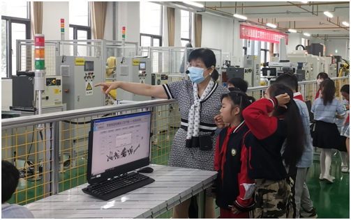 在智能制造生产线实验室,徐喻琼副教授给孩子们详细讲解了一个笔筒是如何在生产线上从毛坯材料由机器人一步步制造出来的,小朋友饶有兴致地问:“机器人也能造出飞机吗?”